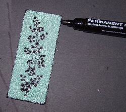 Use a permanent marker to color the edges of the "Bed of Beads". You can also run the edges against your ink pad. Use the marker to fill in any areas of the stamped image that did not print well. Use a pouncing motion when you apply color. If you try to color the micro beads like you are coloring paper, you will end up accidentally removing some of the micro beads.