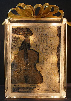 Measure the surface of the block to size your graphic. Remember that the lights shine through the graphic. For best results avoid dark colors and too much of one color. Center your graphic on your block and apply with adhesive of choice. Make sure you burnish it down good.