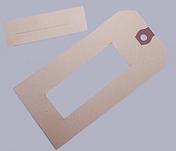Using the microscope slide as a template, cut out the center of a tag.